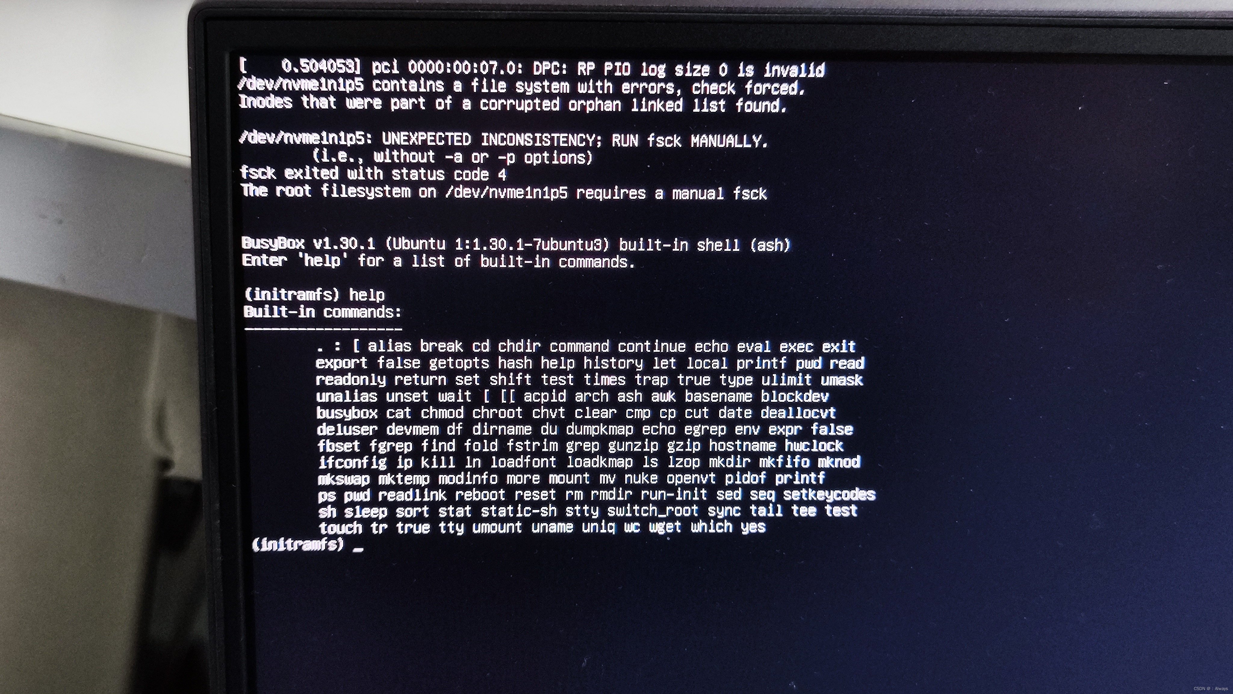 在当前界面输入:fsck -y /dev/nvme1n1p5