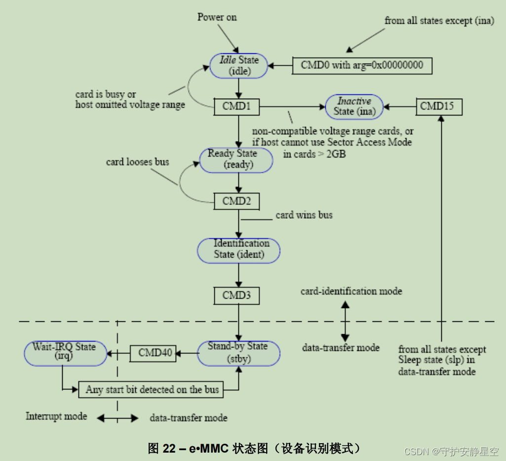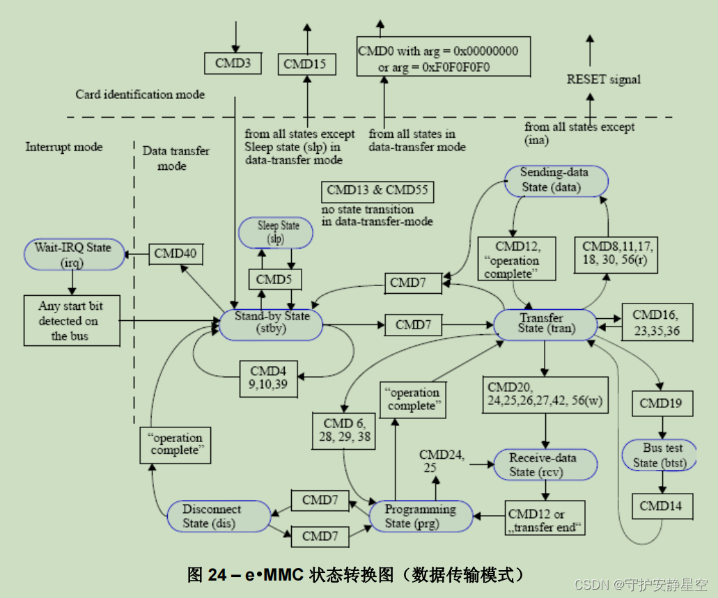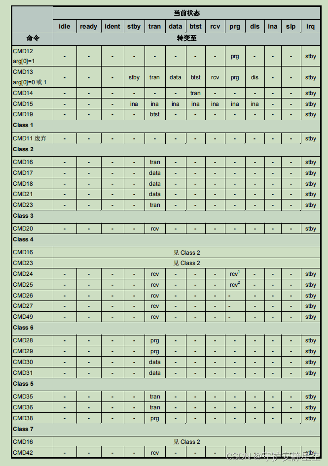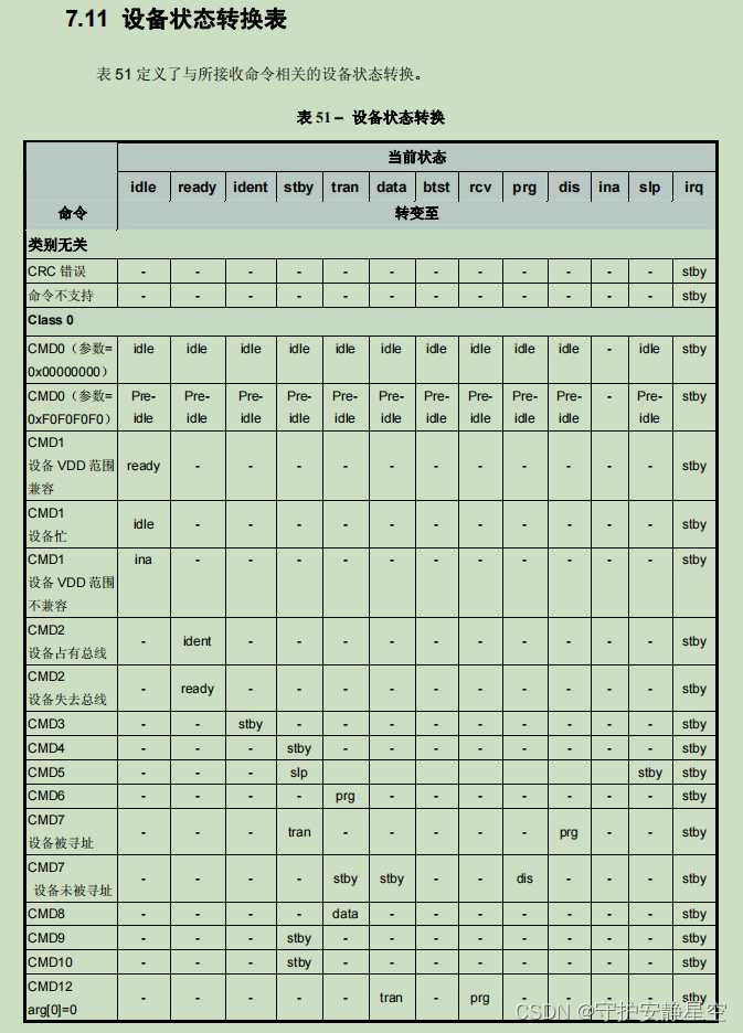 例:比如当前是 stby 待机状态发送 CMD7 转到 tran 传输状态。