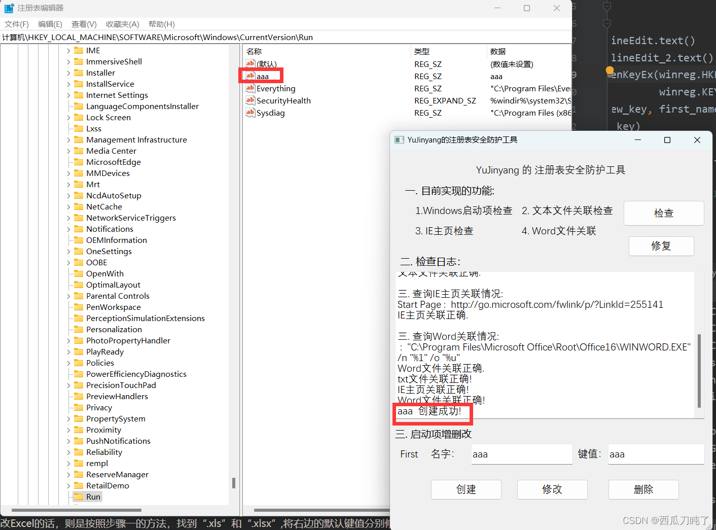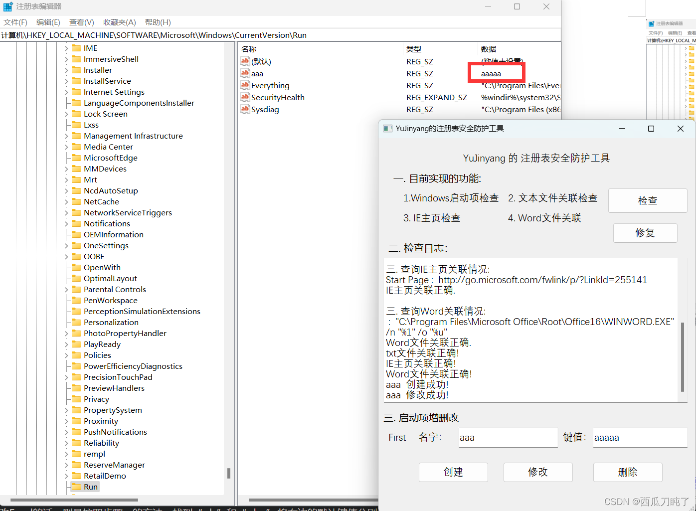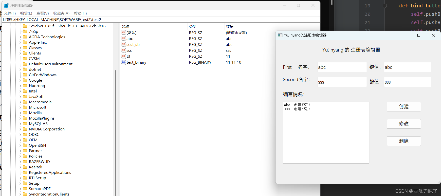 1. 注册表增删改工具:(具体修改的位置为SOFTWARE\test2\test2)