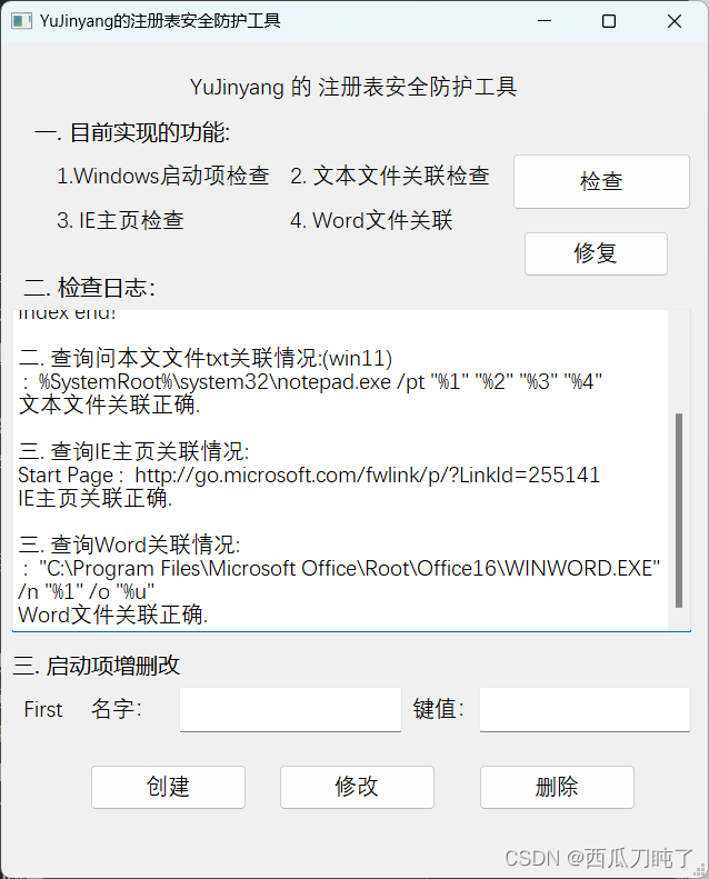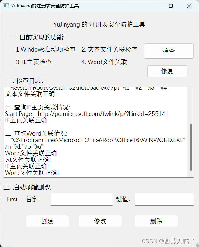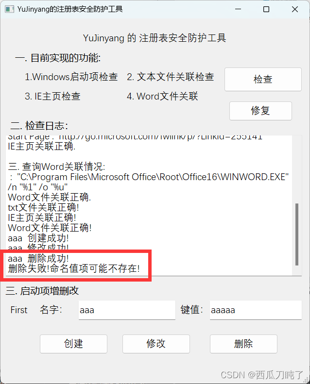 本次实验主要通过编程实现注册表子键的创建、删除,以及子键键值查询和