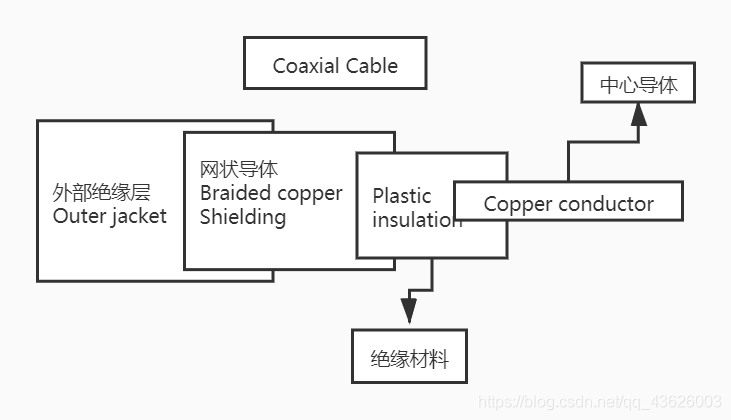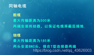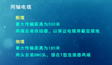 分类(同轴电缆): 基带同轴电缆(50Ω 数字传输,屏蔽层为铜)和宽带同轴电缆(75Ω 模拟传输,屏蔽层为铝)