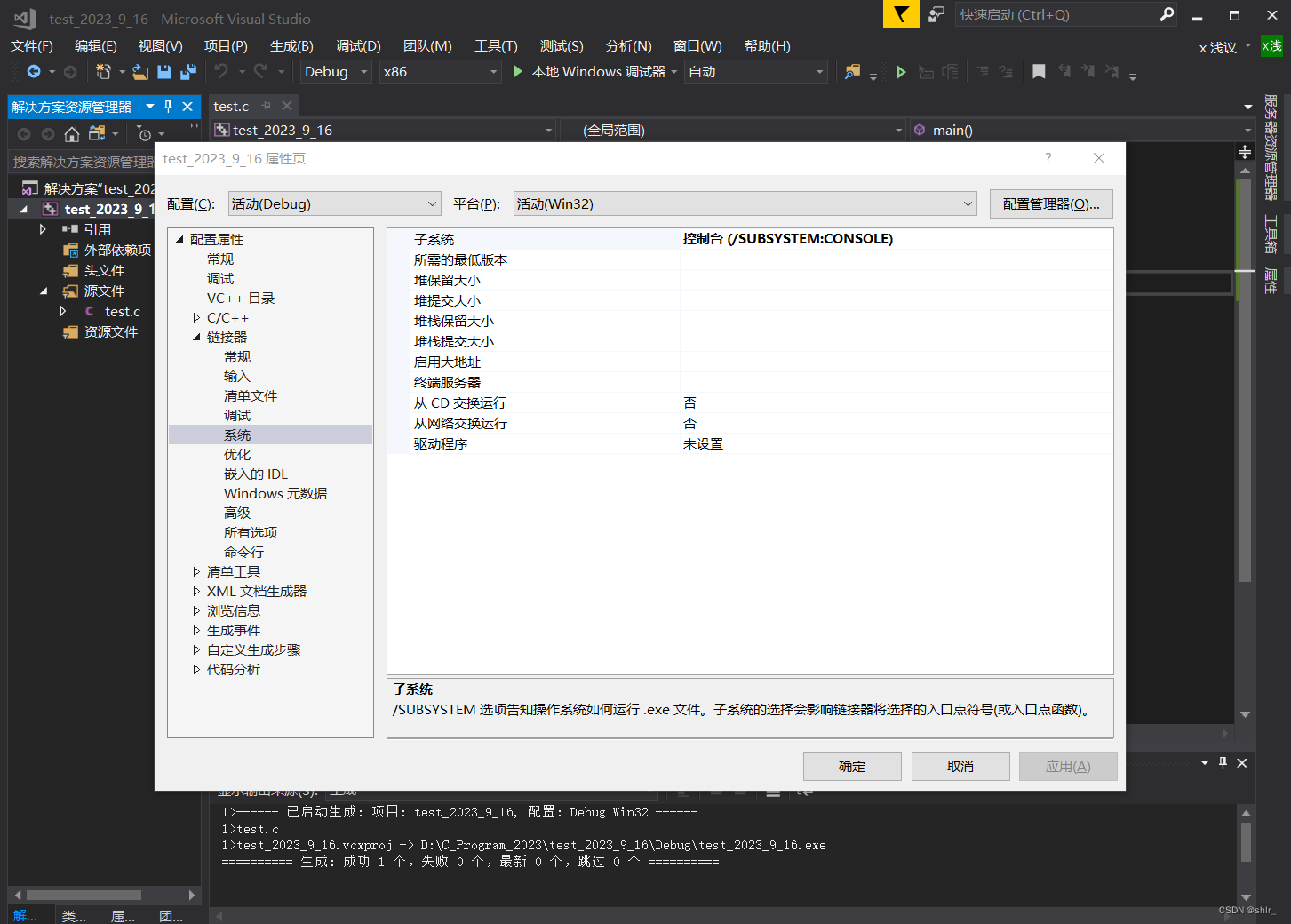 1.设置子系统为控制台,可以防止运行一闪而过。