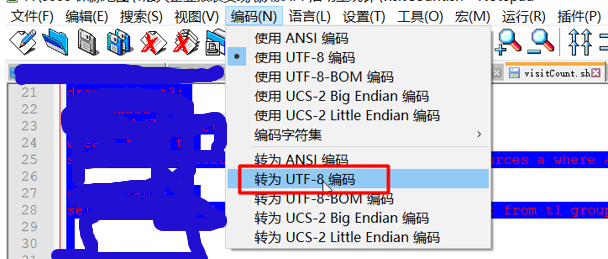 在命令行里执行mysql语句,在命令行不识别中文:为了在sh脚本里识别中文,sh脚本要设置如下格式,将文档格式转换为linux,编码转换为ANSI(实际上是GB3212中文)