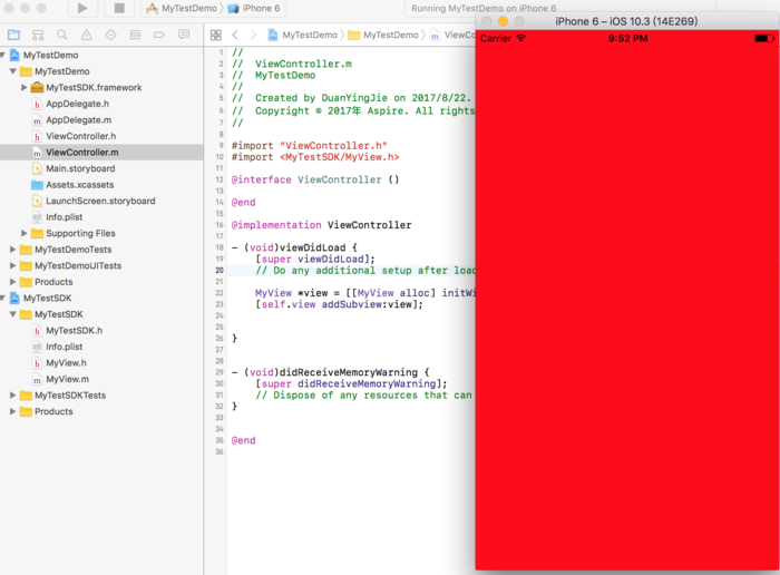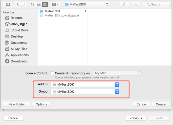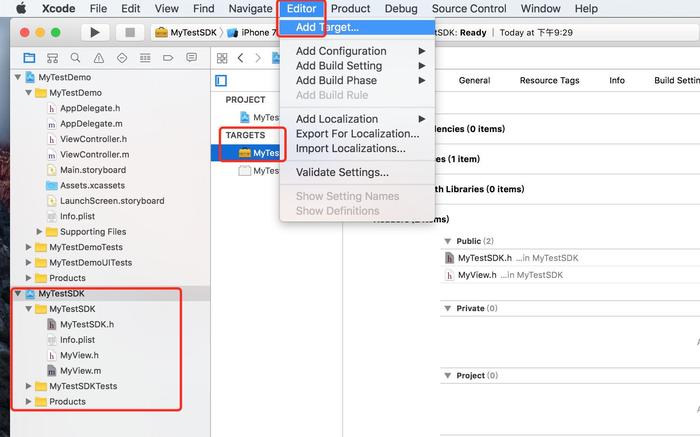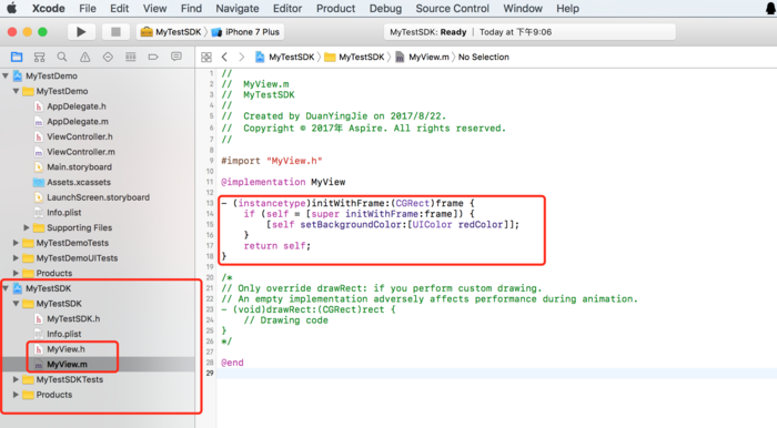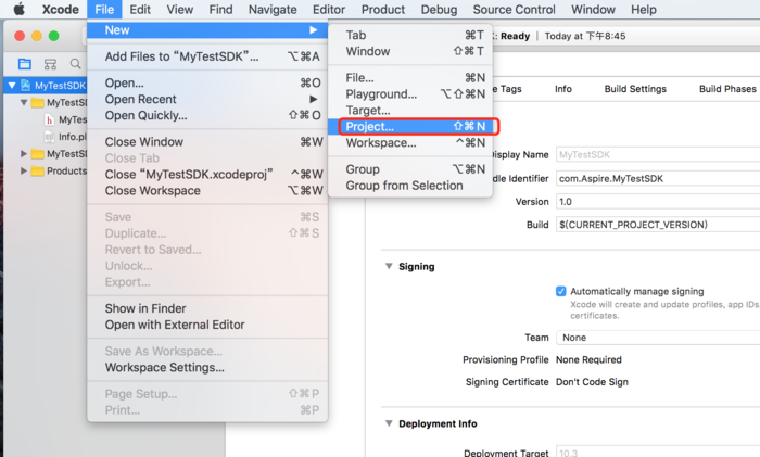 1、打开MyTestSDK.xcworkspace文件,创建project