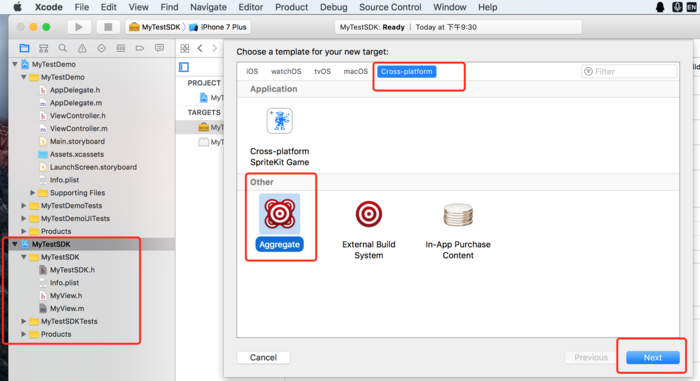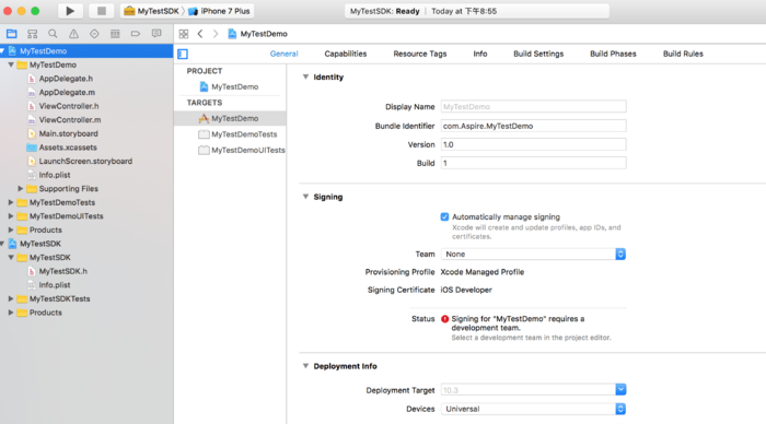 1、打开MyTestSDK.xcworkspace文件,创建project:MyTestSDK