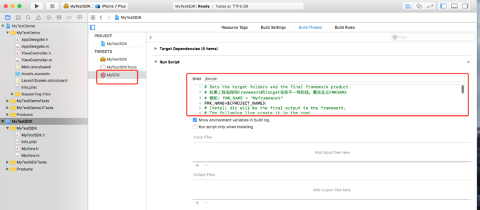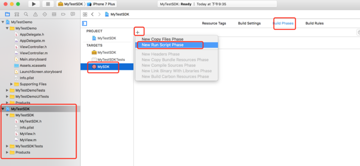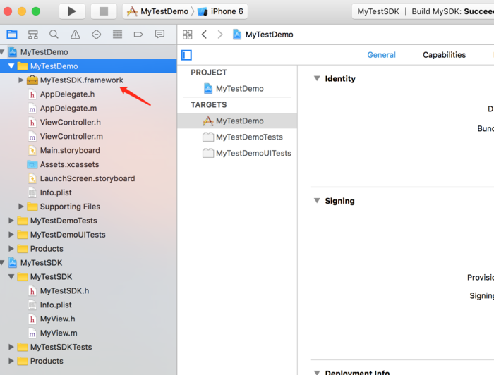 把framework添加到创建好的MyTestSDK.xcworkspace里面