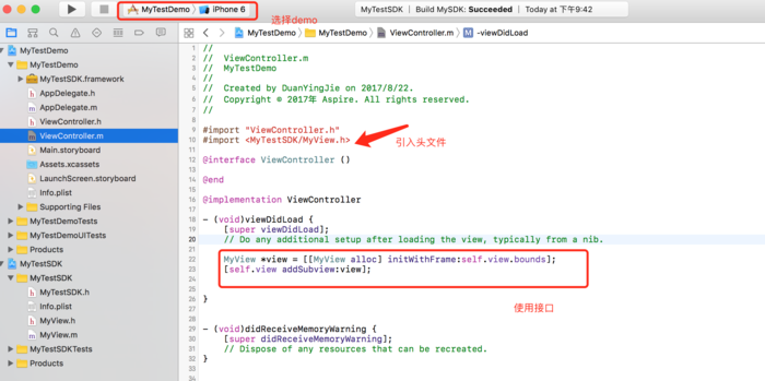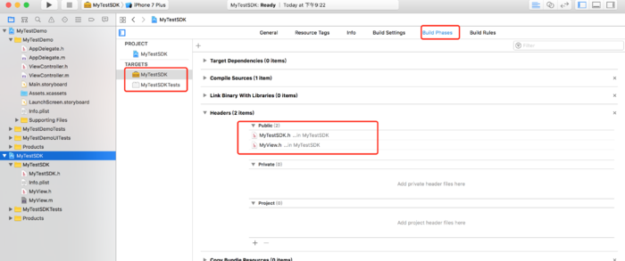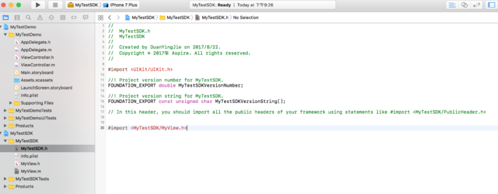 然后需要在MyTestSDK.h(必须是公开的,否则无法引用)中将所有要公开的.h引入