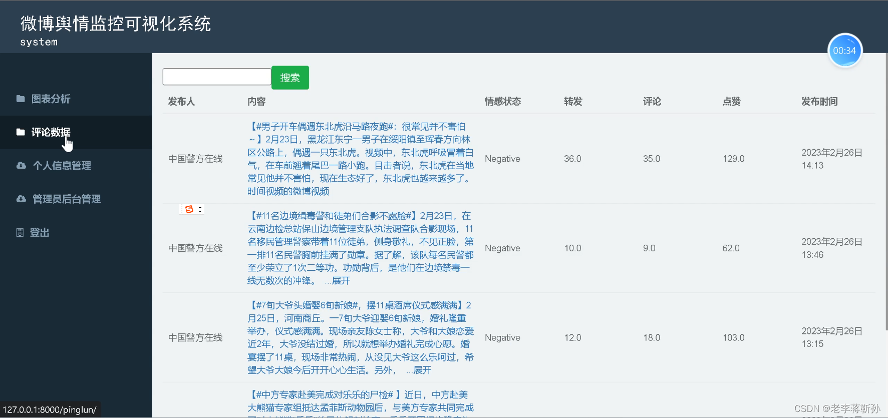 django微博舆情情感分析可视化,此系统有详细的录屏,下面只是部分截图,需要看完整录屏联系博主