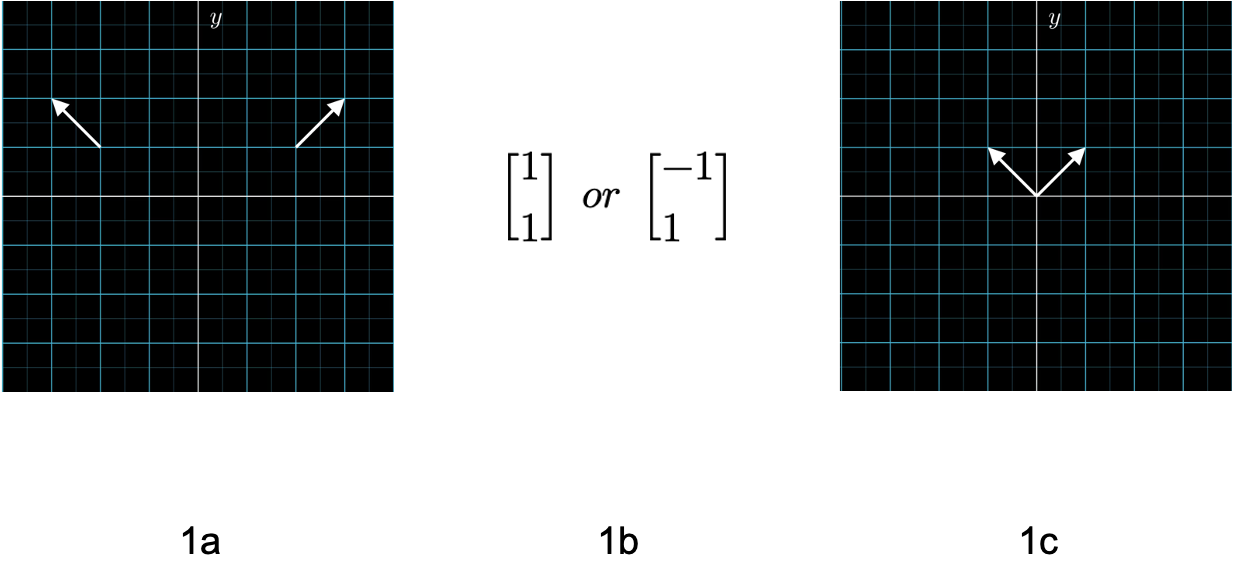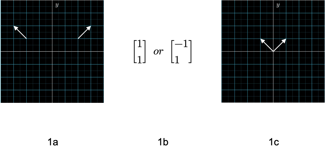 提到矩阵,首先要回顾的就是向量。只是向量在不止一门学科里被提及到:物理的向量指的是一个箭头,有长度,有方向,可以在摆放在空间的任意位置(1a);计算机里的向量更像是一个列表(1b)。而我们这里的向量是一个有方向,有大小,但是起源于原点的箭头(1c)。