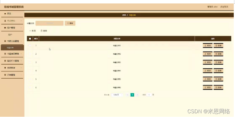 书籍分类管理,在书籍分类管理页面可以对索引,书籍分类等信息进行修改和删除等操作,如图5-9所示。