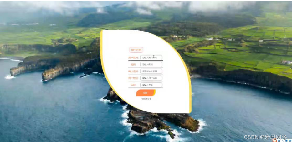 用户注册,在用户注册页面通过填写用户账号,密码,确认密码,用户姓名,年龄等信息进行注册操作,如图5-2所示。