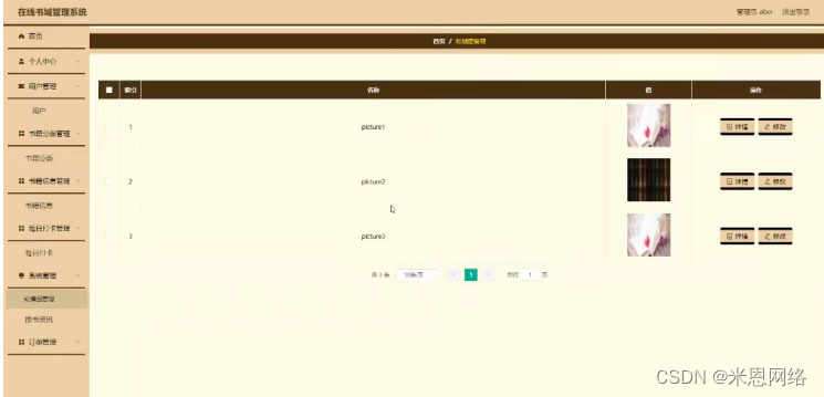 系统管理,在轮播图管理可以对索引,名称,值等内容进行详情,或修改等操作,如图5-12所示。