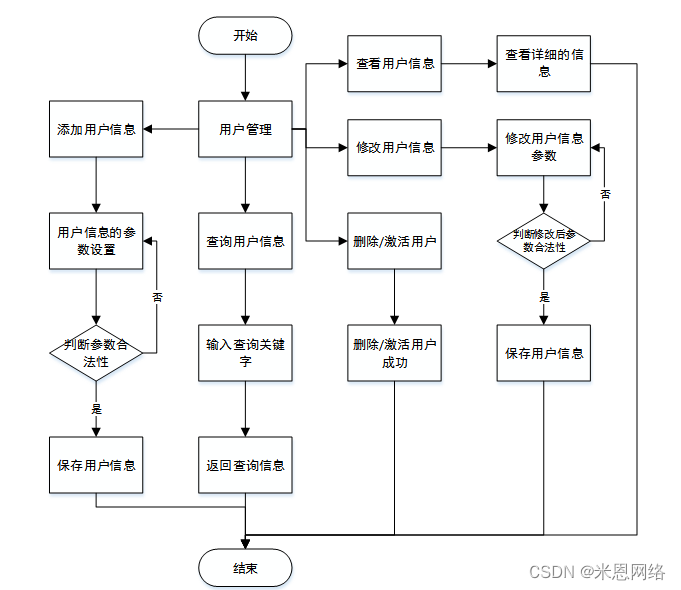 由于不同的系统实际使用用户角色的不同,他们的业务分析也会变得有所不一样,为了论述方便接下来都将以用户功能权限下的系统业务流程来分析,如下图所展示: