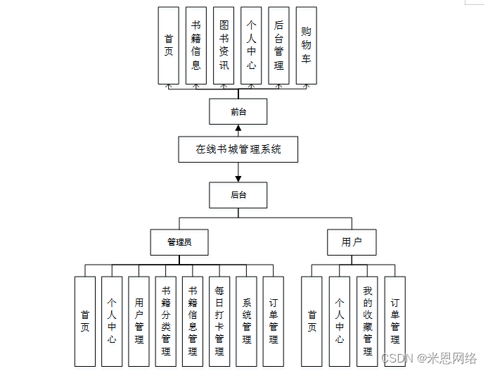 根据一般在线书城管理系统的功能需求分析,本系统的功能模块如下: