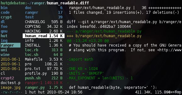 Ranger 使用 Python 编写,默认为使用 vim 风格的按键绑定,对于使用 vim 的用户来说几乎没有学习成本,能够快速上手使用。