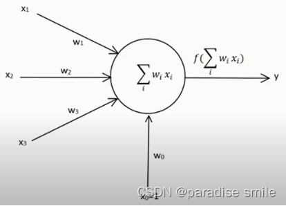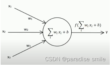 y = f ( ∑ i = 1 m x i w i ) y = f(\sum_{i=1}^{m}x_iw_i) y=f(i=1∑mxiwi)