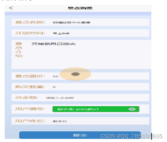 | 未选择景点,点击提交 | 提示请选择景点 | 与预期结果一致 |