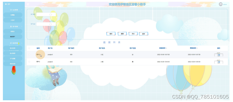 用户管理模块:管理员查看用户基本信息,并实现对用户信息的增加、删除、修改等功能。