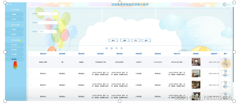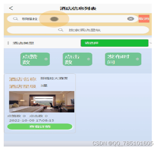酒店信息列表如下图所示。