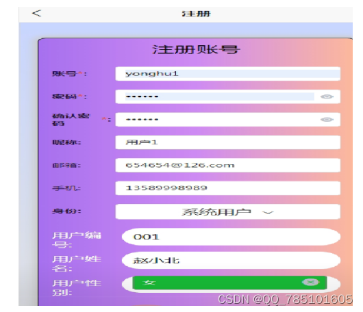 | 功能描述 | 用于用户注册 | |