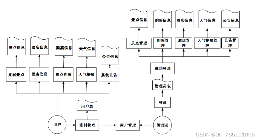 用户选择景点添加购票操作,管理员审核购票信息,管理所有用户的购票记录。