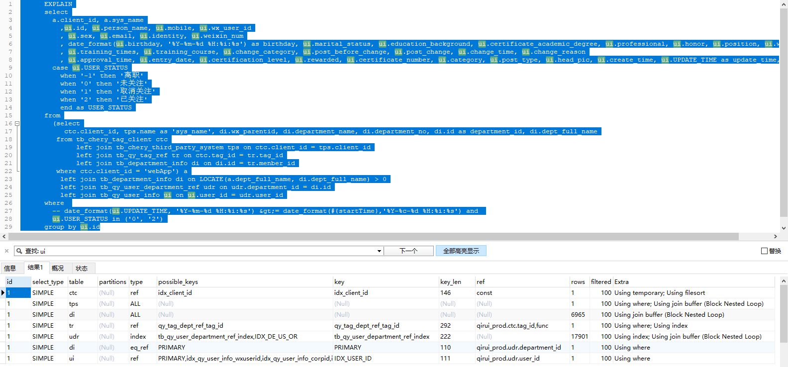 在一个全表扫描19000条数据的操作上,同时出现了Using temporary和Using filesort,这肯定会造成sql查询缓慢