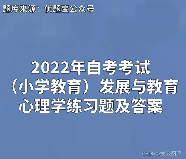 2022年自考专业考试(小学教育)发展与教育心理学练习题,根据最新自考专业考试(小学教育)发展与教育心理学大纲与历年自考专业考试(小学教育)发展与教育心理学真题汇总编写,包含自考专业考试(小学教育)发展与教育心理学常考重点题型与知识点,有助于考生复习备考自考专业考试(小学教育)发展与教育心理学,取得好成绩。
