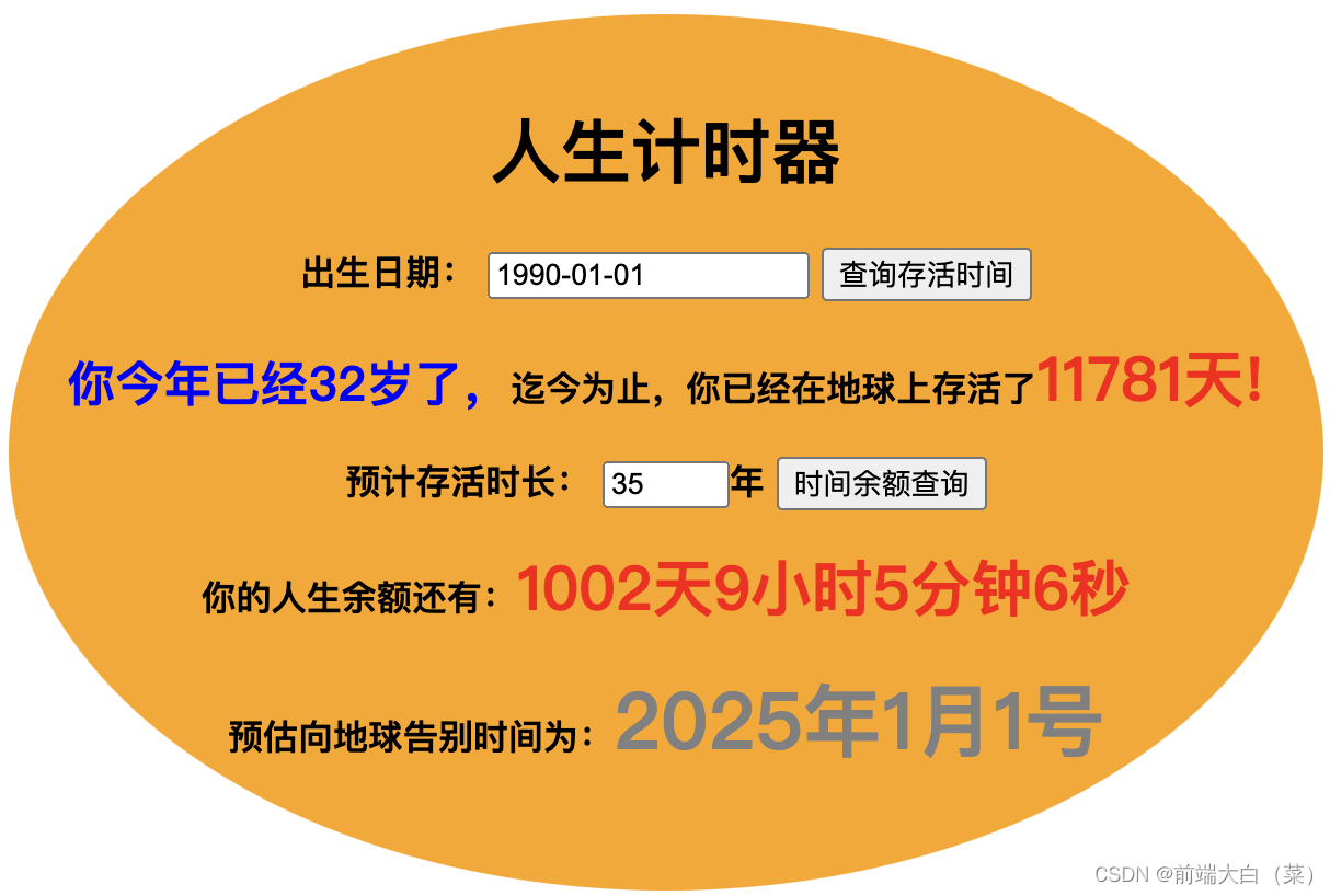 效果二:人生余额计算【输入存活时间,计算人生剩余的时间和告别日期】