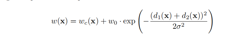 接下来的权重的分配问题,论文中给出的公式如下:
