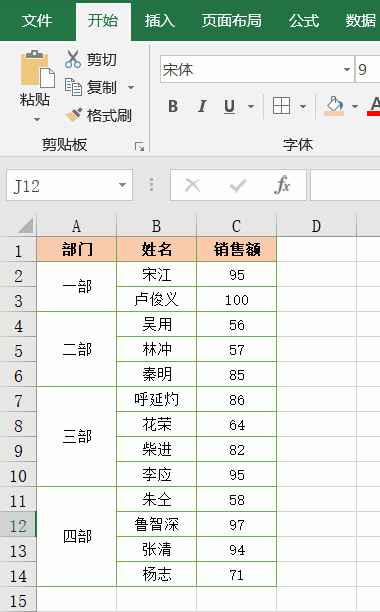 首先选中D2:D14单元格,输入上面的公式,输入完成后按Ctrl+回车键确认公式。