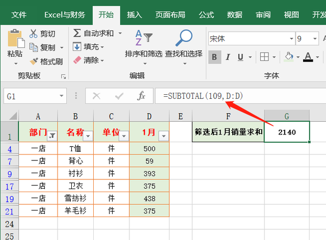 当表格数据筛选后再进行求和计算时,SUM函数好象不能把筛选掉的数据去掉。