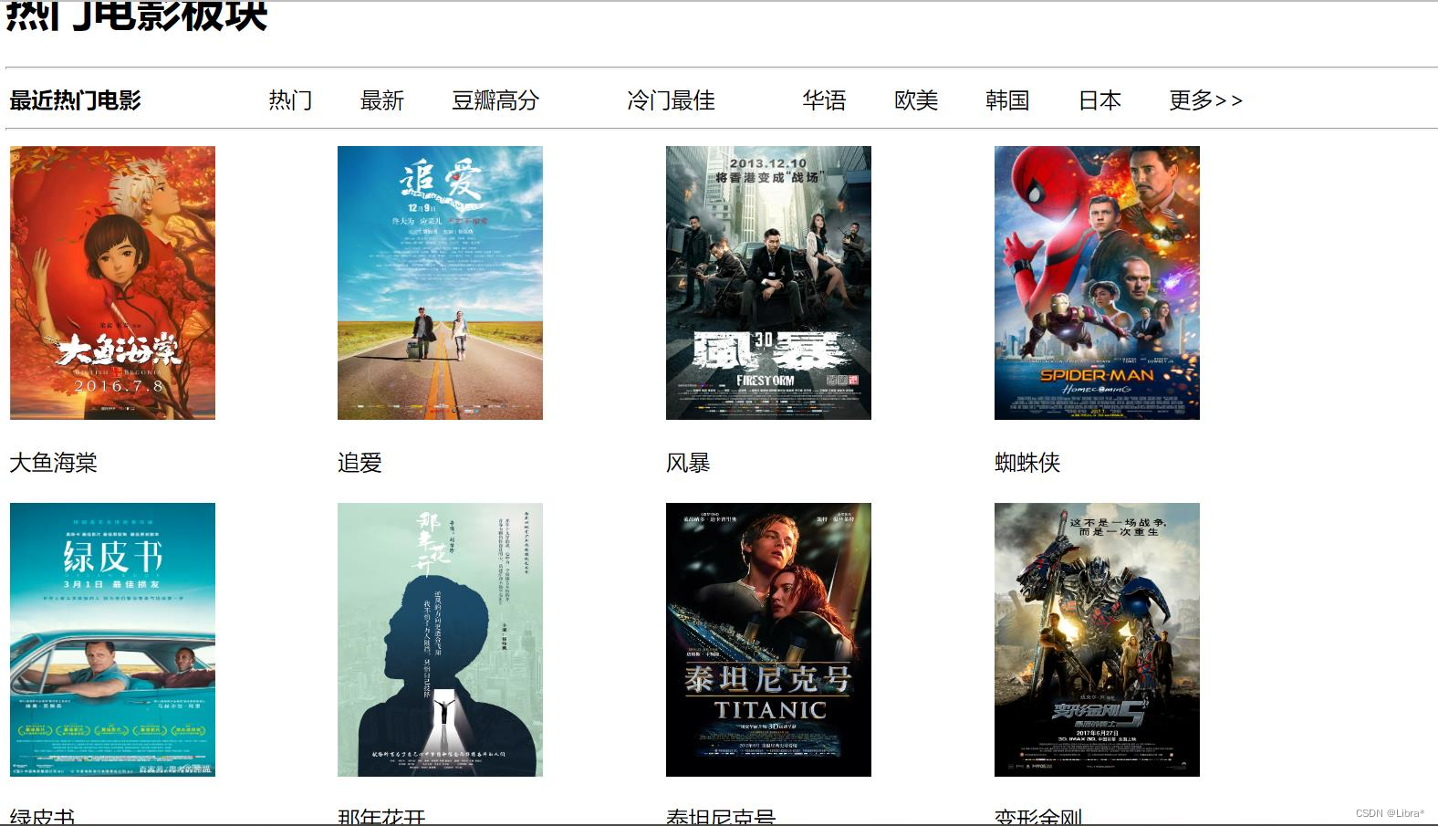 热门电影板块热门电影板块最近热门电影热门最新豆瓣高分冷门最佳华语欧美韩国日本更多>>大鱼海棠追爱风暴蜘蛛侠绿皮书那年花开泰坦尼克号变形金刚
