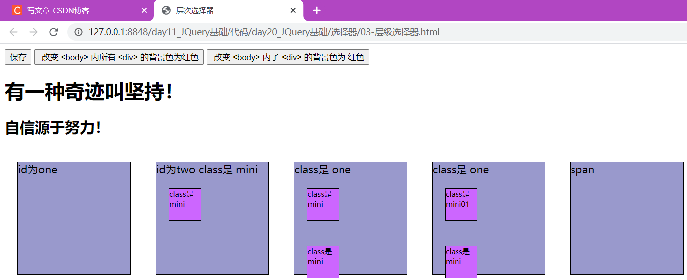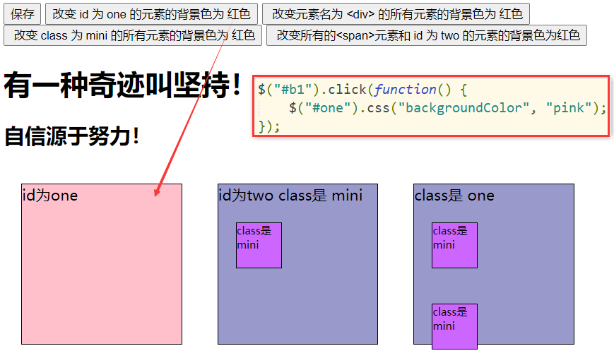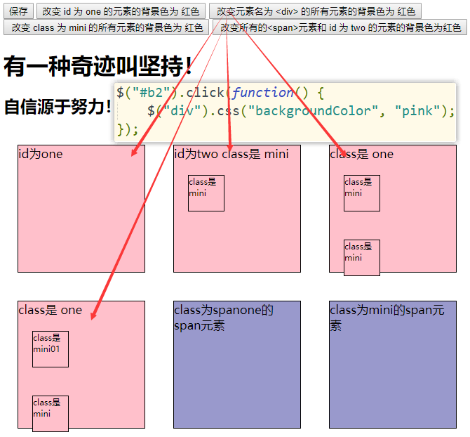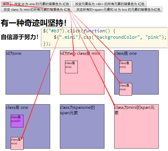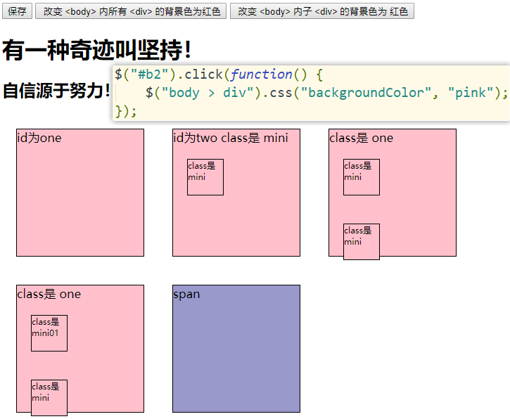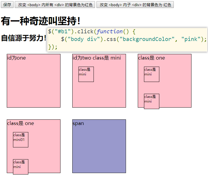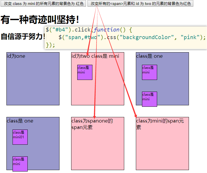 id为oneid为two class是 miniclass是 miniclass是 oneclass是 miniclass是 miniclass是 oneclass是 mini01class是 miniclass为spanone的span元素class为mini的span元素