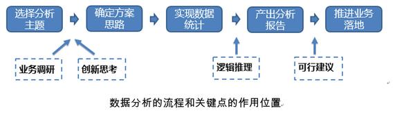 选择分析主题、确定方案思路、实现数据统计、产出分析报告、推进业务落地。