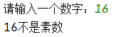 else:i = 2while i < num:if num % i == 0:print("%d不是素数" % num)breaki += 1else:print("%d是素数" % num)