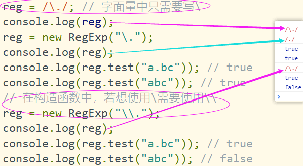 注意:使用构造函数时,由于它的参数是一个字符串,而\是字符串中转义字符,如果要使用\则需要使用\\来代替。