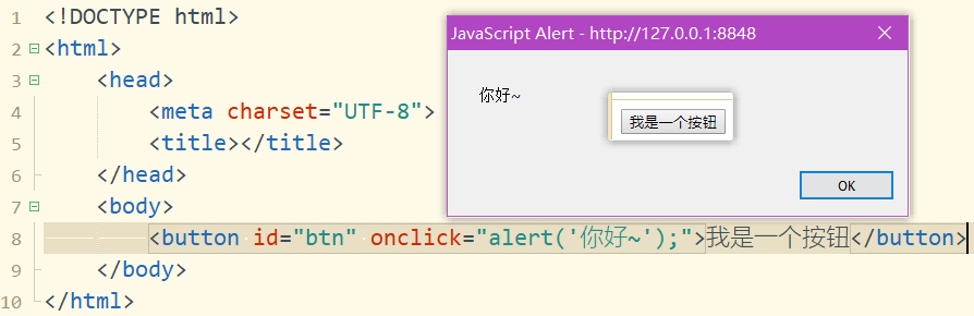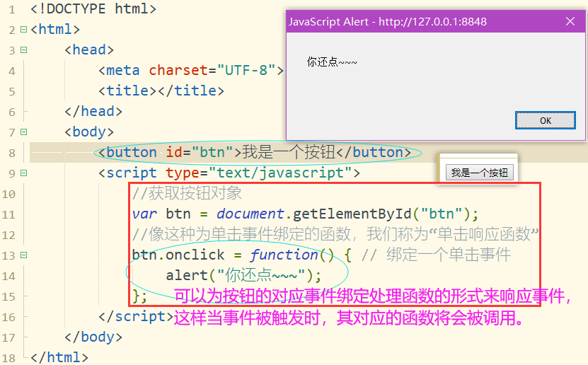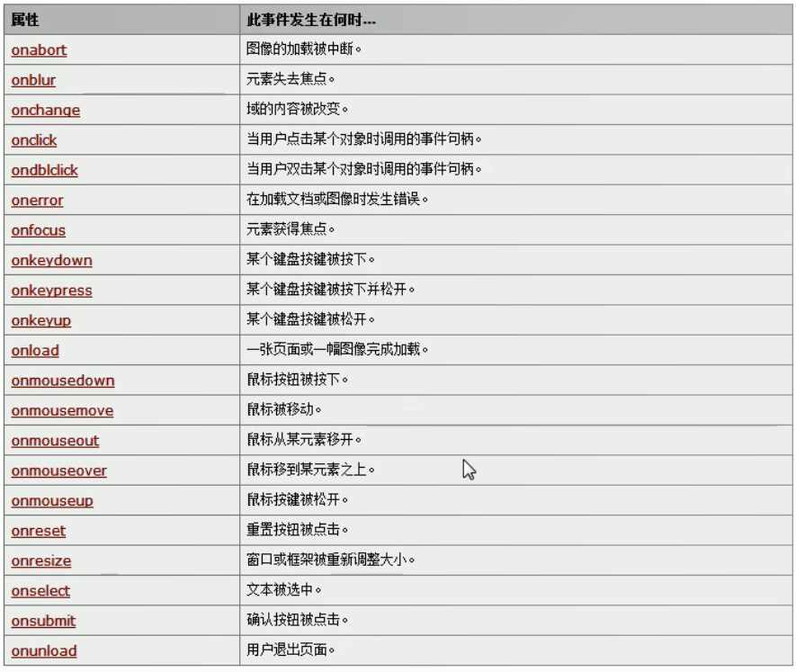 我们可以在事件对应的属性中设置一些js代码,这样当事件被触发时,这些代码将会执行。