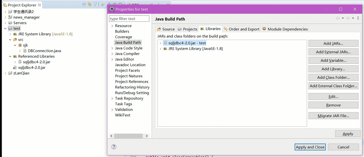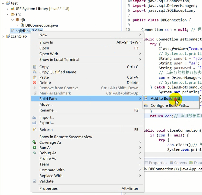 参考文章:java连接sql server 2012(免费的jar包下载及导入教程)