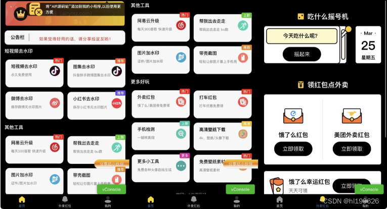 小程序源码下载地址:【小程序源码】黑色简约多功能工具箱-小程序文档类资源-CSDN下载这是一款以黑色为主题所美化的一款多功能小程序另外还由多种功能组合而成的一款小程序如下:短视频更多下载资源、学习资料请访问CSDN下载频道.https://download.csdn.net/download/hl199626/85706680