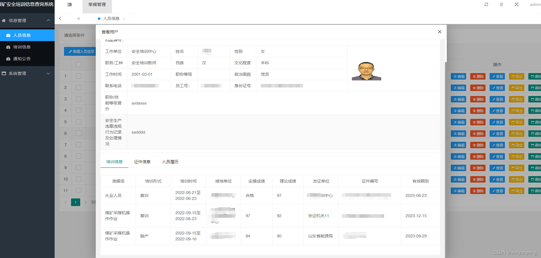 煤矿企业应当建立健全从业人员安全培训档案,实行一人一档。煤矿企业从业人员安全培训档案的内容包括: