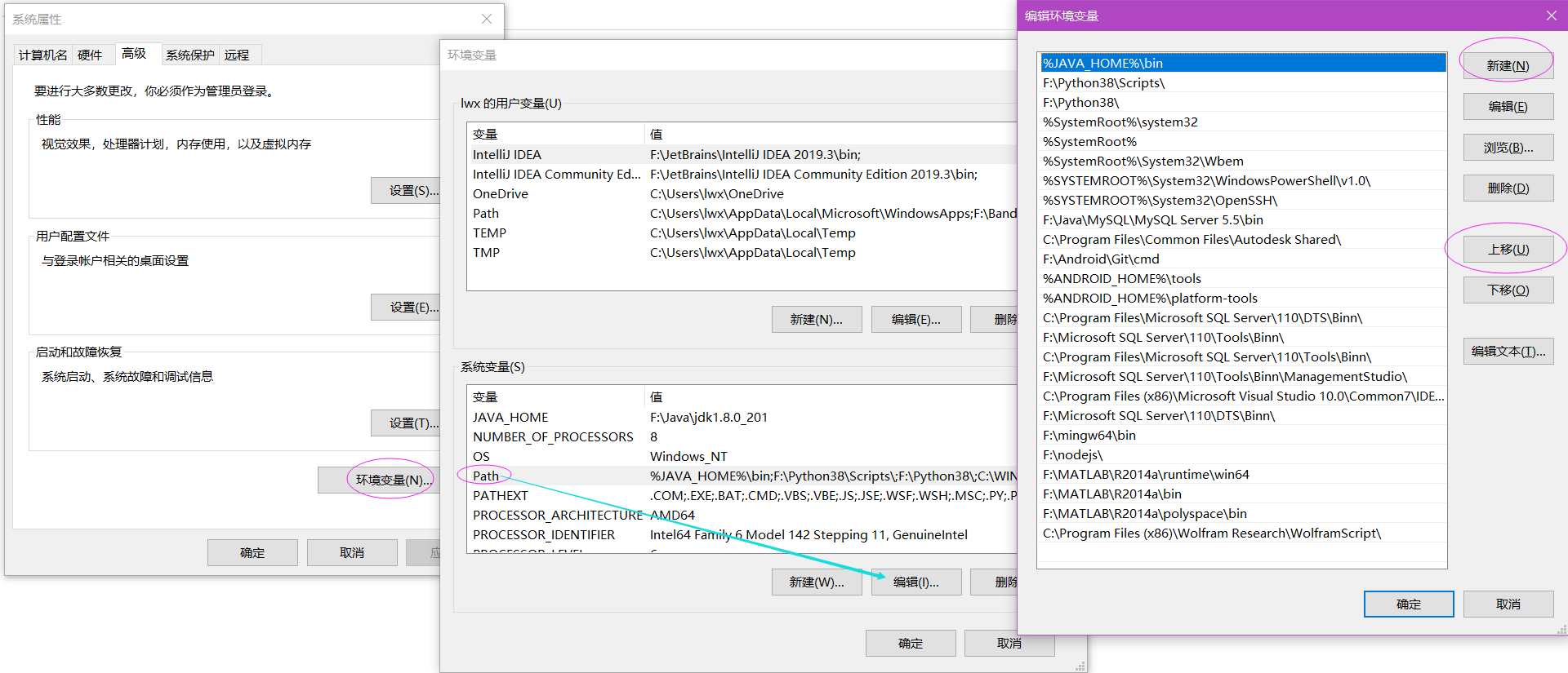 双击Path-->新建-->添加“%JAVA_HOME%\bin”-->将这一行变量上移到最顶端-->完成!