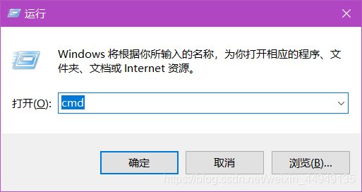按“Windows+R”, 弹出运行窗口,输入“cmd”。