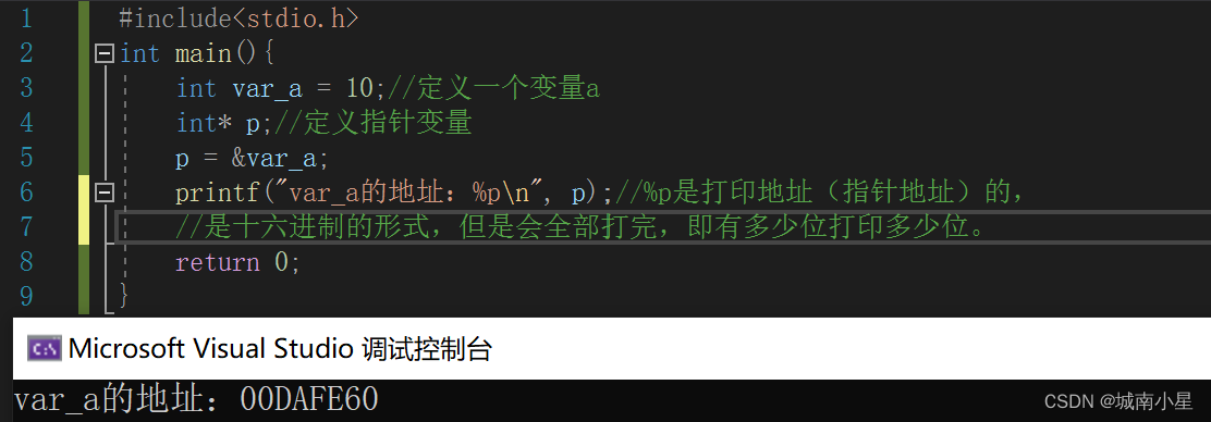 2)指针p的类型必须与变量a的类型一致,因为整型的指针只能存储整型变量的指针地址。