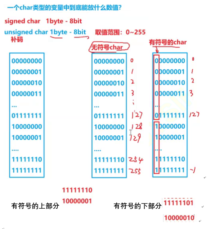 但是由于char类型只有1的字节所以只有8个比特为因此
