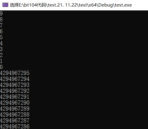 后面的结果4294967289后面还有没执行完全。