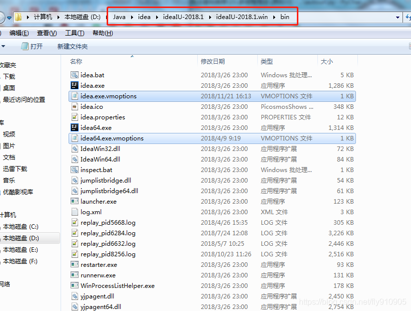 进入intellij idea安装目录,找到bin文件夹下面idea64.exe.vmoptions和idea.exe.vmoptions这两个文件