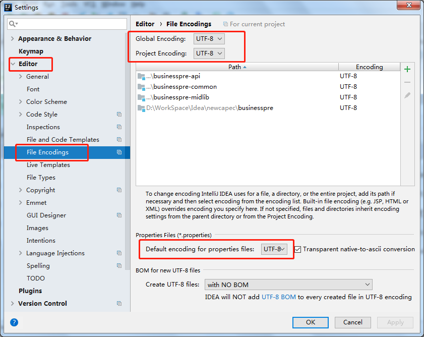 第二步:修改 idea中的FileEncodings:
