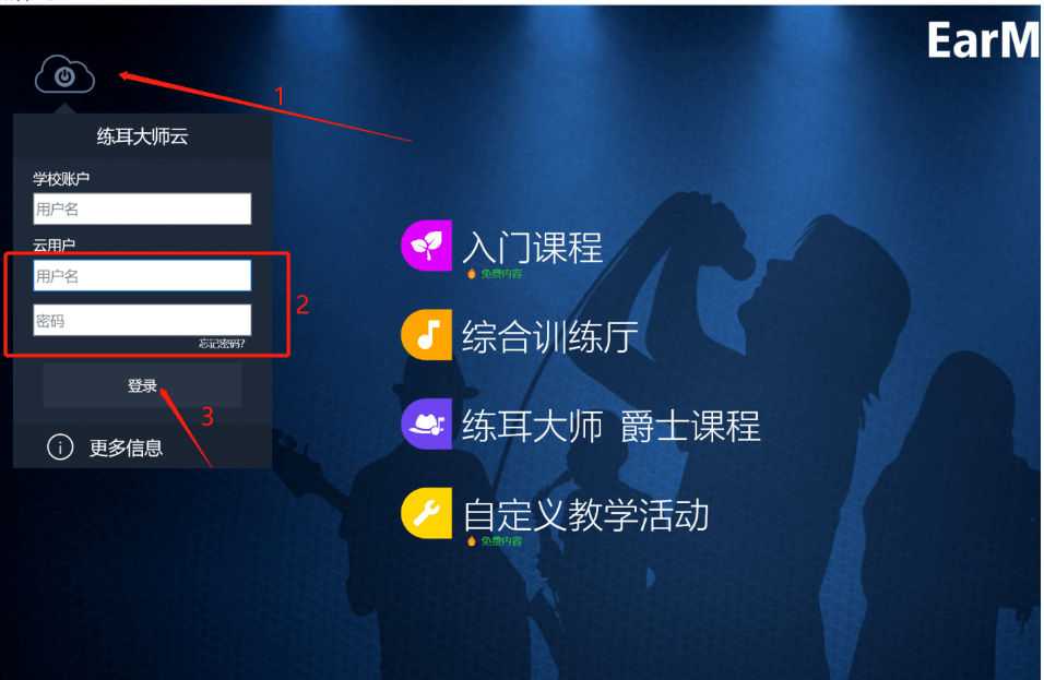 (4)打开EarMaster软件,点击左上角云标志,输入用户名(就是注册邮箱)和密码,点击登录即可。