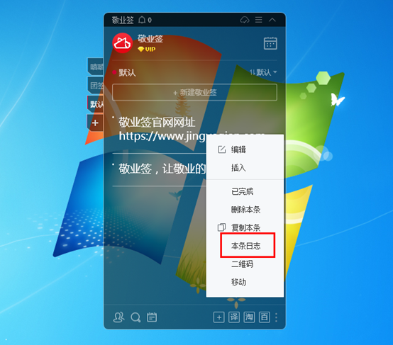 二、选择便签分类,在相应分类内容列表非排序模式下,选择要复制的便签内容,单击右键在弹出的操作菜单中选择“本条日志”并点击;