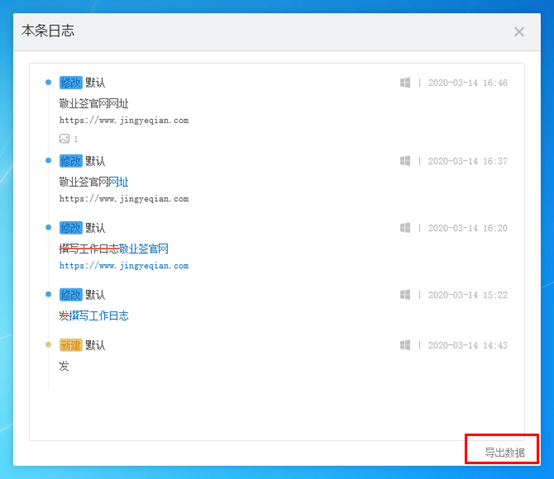 三、弹出本条日志详情框,可查看本条日志详情内容,如需导出本条日志内容数据,可点击右下角的“导出数据”按钮。